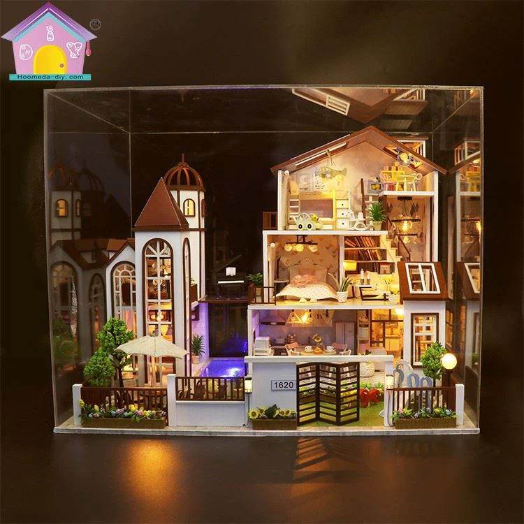 Handmade wooden dollhouse dream doll house puzzle diy miniature room