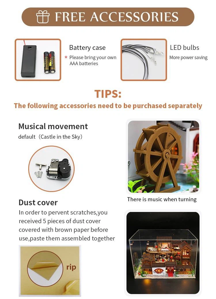 4.Glue / battery /dust cover/music box are not included